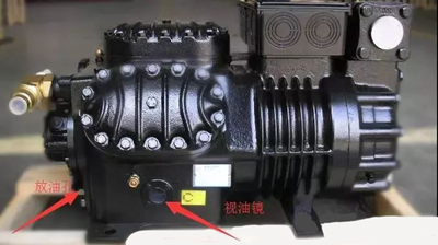 方案1:擰下壓縮機曲軸箱側面的工藝端口柱塞,以此作為充注口將冷凍油通過合適的工具倒入曲軸箱內;