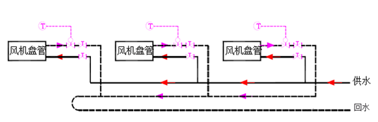 同程式:供回水干管中的水流方向相同,經(jīng)過每一環(huán)路的管路長度相等。