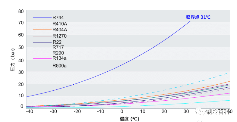 (制冷系統(tǒng)中使用的所有制冷劑的蒸發(fā)壓力曲線)
